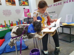 Crufts 2020 had the normal stands and shows and everyone appeared to have a good time. We were lucky again to have been invited to attend the Bark and Read stand with the Kennel Club. We are partners with the Kennel Club’s school initiative to help children enjoy reading. Val, our CEO, was involved in discussing the Bark and Read Standards of Practice, ensuring there are guidelines for the schools as well as us, the volunteers.